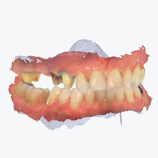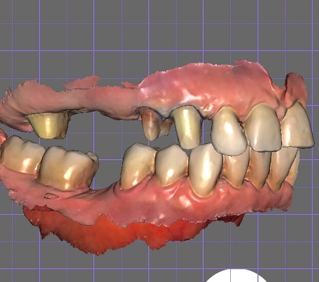 Skenujte všechny všechny vestibulární plochy horní i dolní čelisti. Podle nich se po naskenování pravé a levé strany mezičelistní registrace následně určuje přesná skusová pozice.