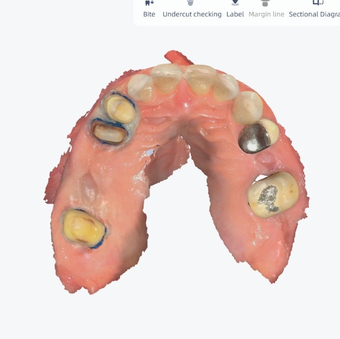 CAD technik na základě digitálního otisku přesně určí hranici preparace a nastaví správné parametry odlehčení.