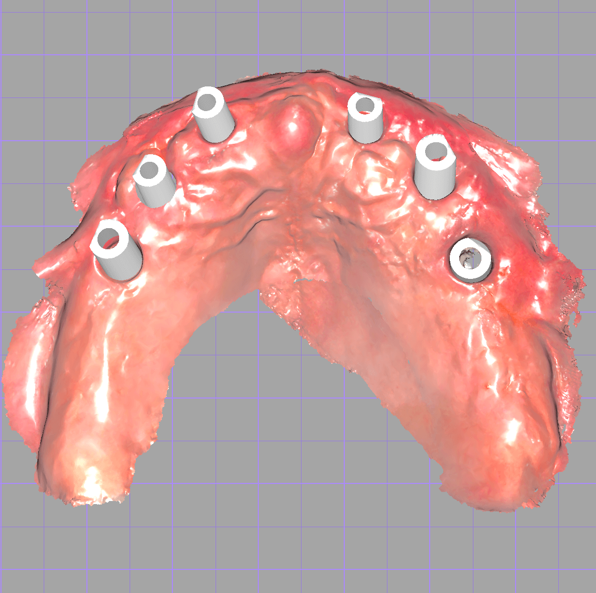 Pro otiskování implantátů se používají skenovací tělíska, která zajišťují přesné určení pozice a sklonu implantátů.