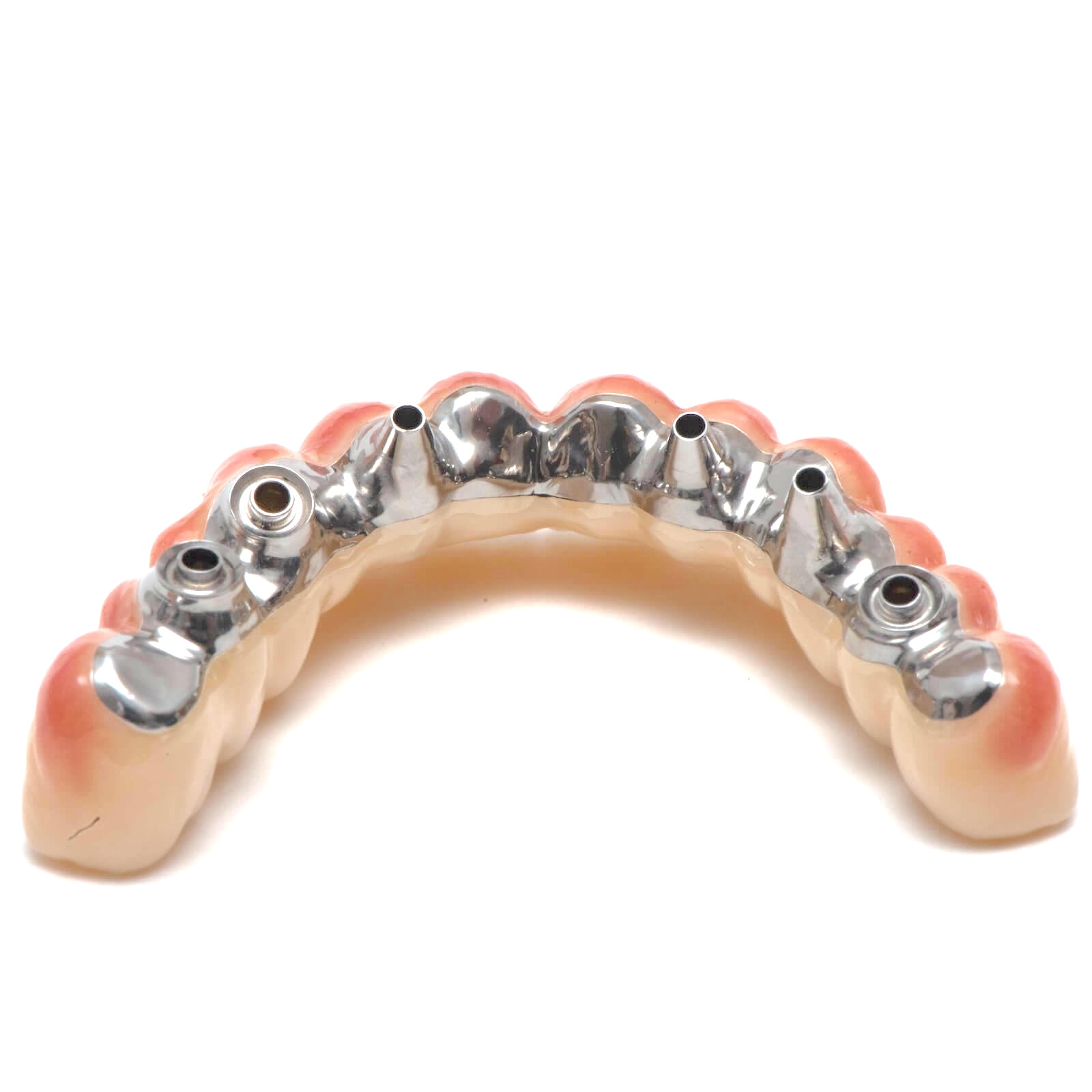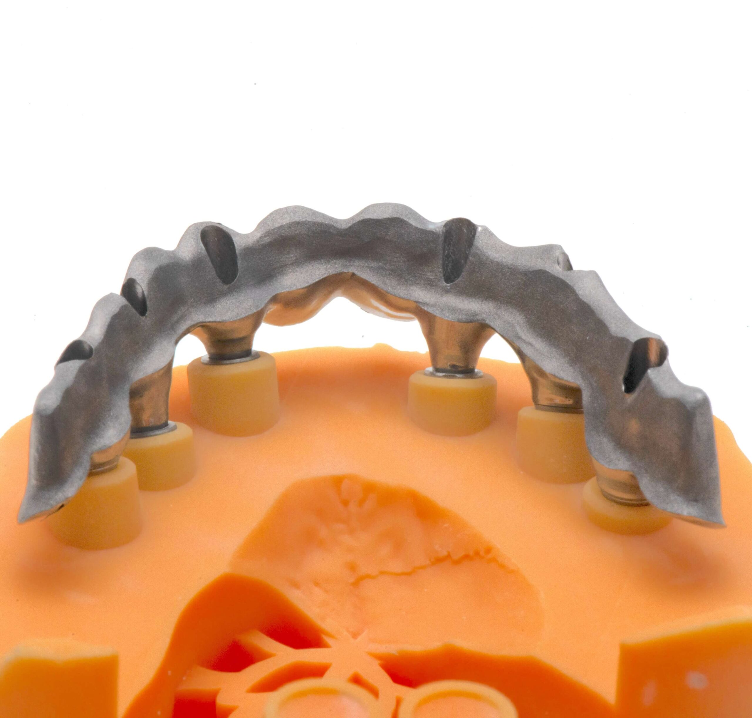 Každý dosed titanové konstrukce na gingivu musí být precizně vyleštěn do vysokého lesku. Plochy musí být hladké, bez podsekřivých částí, aby je pacient mohl snadno udržovat čisté přímo v ústech.