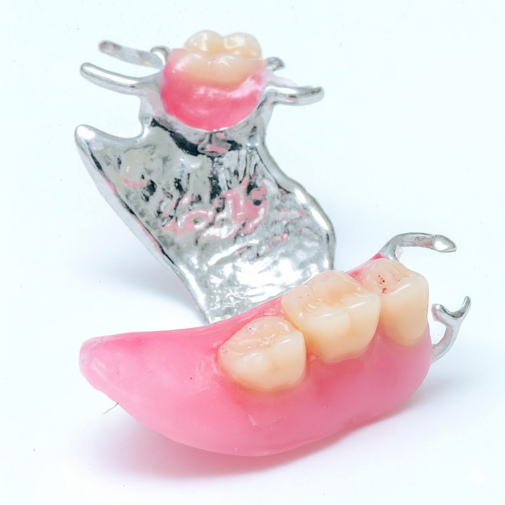 Skeletové snímatelné náhrady představují nadstandardní řešení pro pacienty, kteří přišli o některé zuby v jedné nebo obou čelistech. Využívají precizní kovovou konstrukci ze slitiny CoCr nebo titanu, která zajišťuje vysokou pevnost, dlouhou životnost a minimální objem v ústech. Všechny skeletové náhrady zhotovujeme výhradně moderní metodou CAD/CAM, která zaručuje maximální přesnost, funkčnost a estetiku výsledné práce.